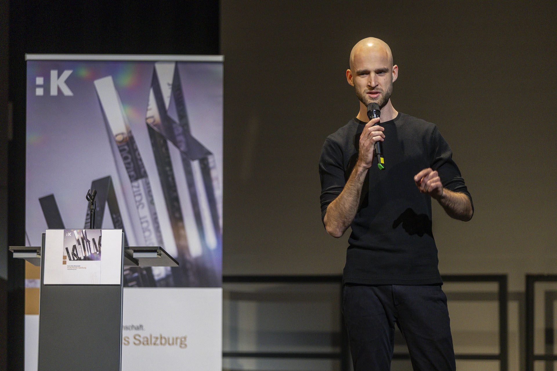 Die Kulturfondspreise 2025 wurden am Montag, 17. November im Solitär der Universität Mozarteum verliehen. Die Auszeichnungen wurden vom Bürgermeister und Kulturressortzuständigen Bernhard Auinger verliehen. Die Kulturfondspreise 2025 wurden unter dem Motto „Frieden fördern – Verständigung schaffen – Zukunft öffnen“ ausgeschrieben. Denn das Jubiläum „80 Jahre Kriegsende und Befreiung 1945“ bat eine Gelegenheit, nicht nur die Vergangenheit zu reflektieren, sondern auch den Blick nach vorne zu richten: auf die Gestaltung von Frieden, Offenheit, Verständigung und respektvollem Umgang miteinander. Frieden bedeutet auch eine aktive Auseinandersetzung mit Vielfalt, die Öffnung von Räumen für Integration, Wertschätzung und Dialog, sowie die Suche nach gemeinschaftlichen Lösungen für die Herausforderungen der Gegenwart und Zukunft.